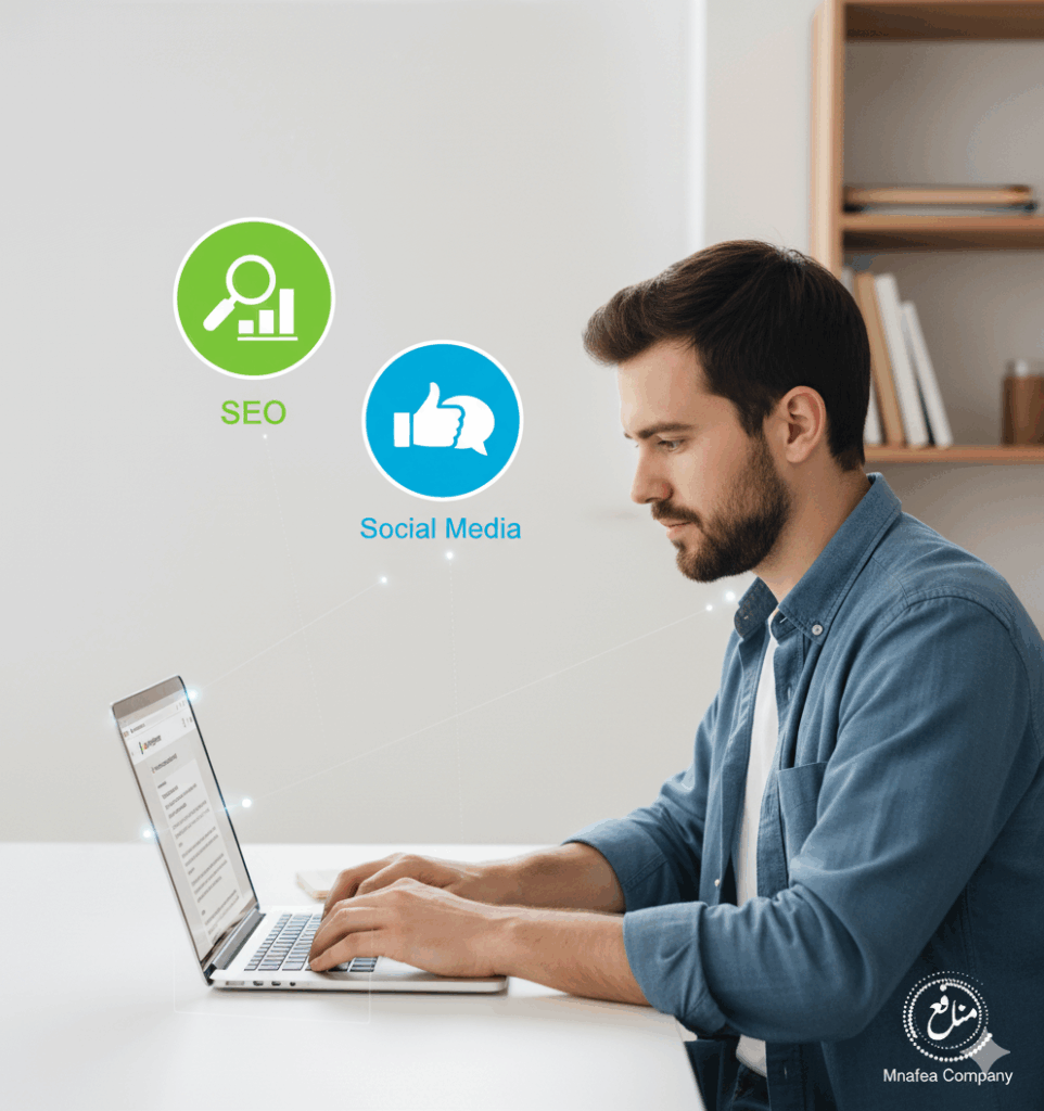 في شركة منافع، نساعد عملائنا على بناء استراتيجية تسويق الكتروني متكاملة تشمل جميع القنوات الفعّالة في السوق السعودي، من تحسين محركات البحث (SEO) إلى إدارة وسائل التواصل الاجتماعي (SMM) وتصميم الحملات الإعلانية المدفوعة (SEM).